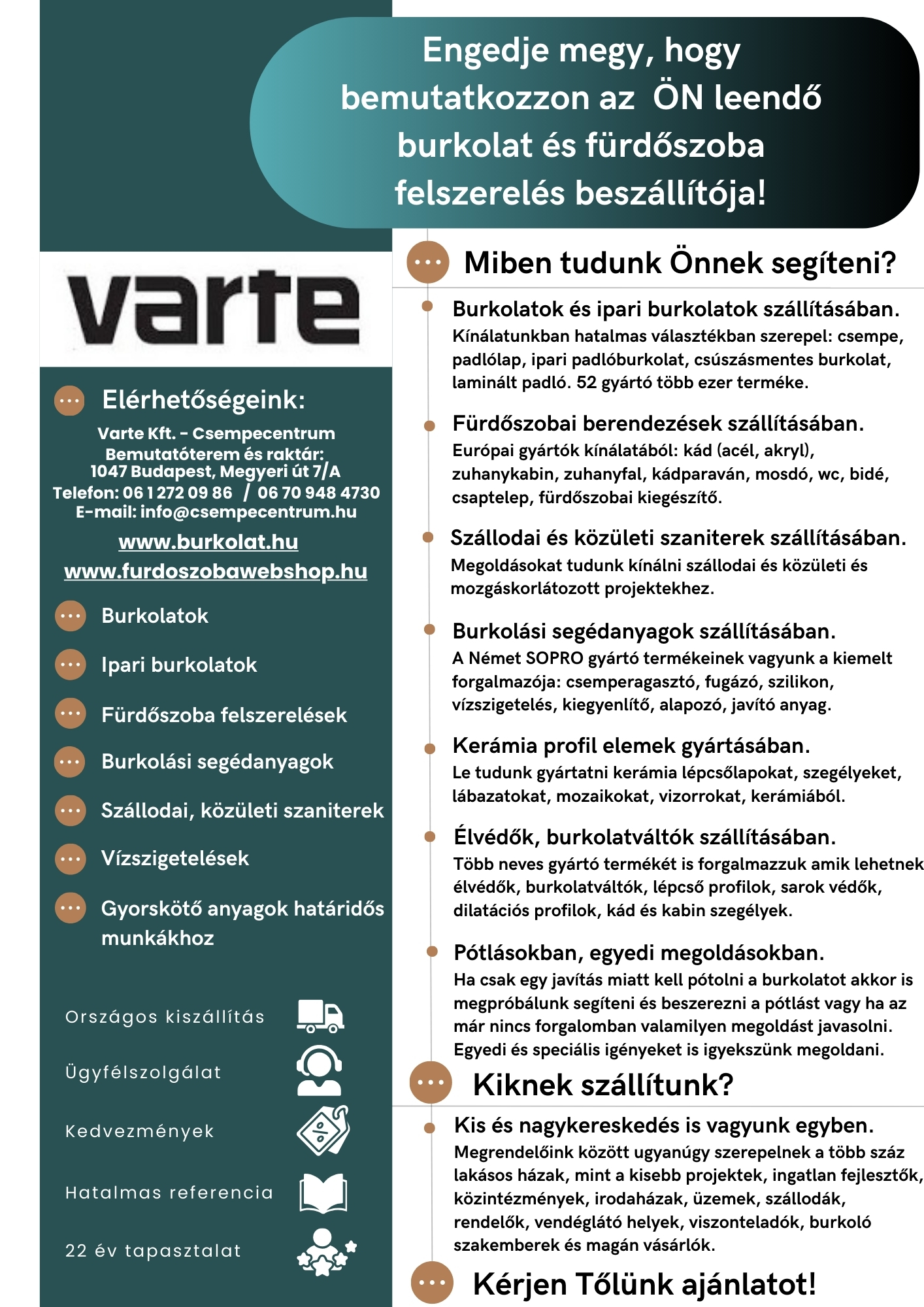 Ára: 6.921 Ft + áfa / m2 (8.790 Ft bruttó)